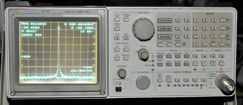 The noise performance is very good. Down here is a picture of the 9th harmonic of it’s internal 100 MHz calibrator at 300Hz RBW.
