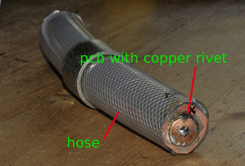 I used a piece of airhose. That fits perfect. the metal ring is original and now is used to close the battery department. I made contacts from pcb and there is a core of foam in the hose that pushes out the pcb so it makes good contact. Nois level when zerod dropped from 40-20 on the scale.