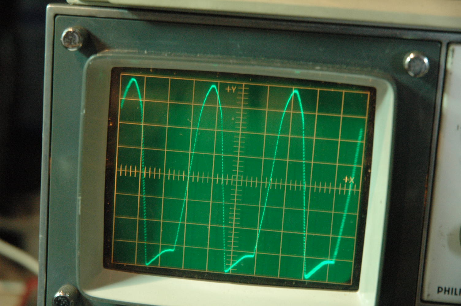 Hieronder enkelvoudige gelijkrichting. De frequentie blijft 50 Hz.