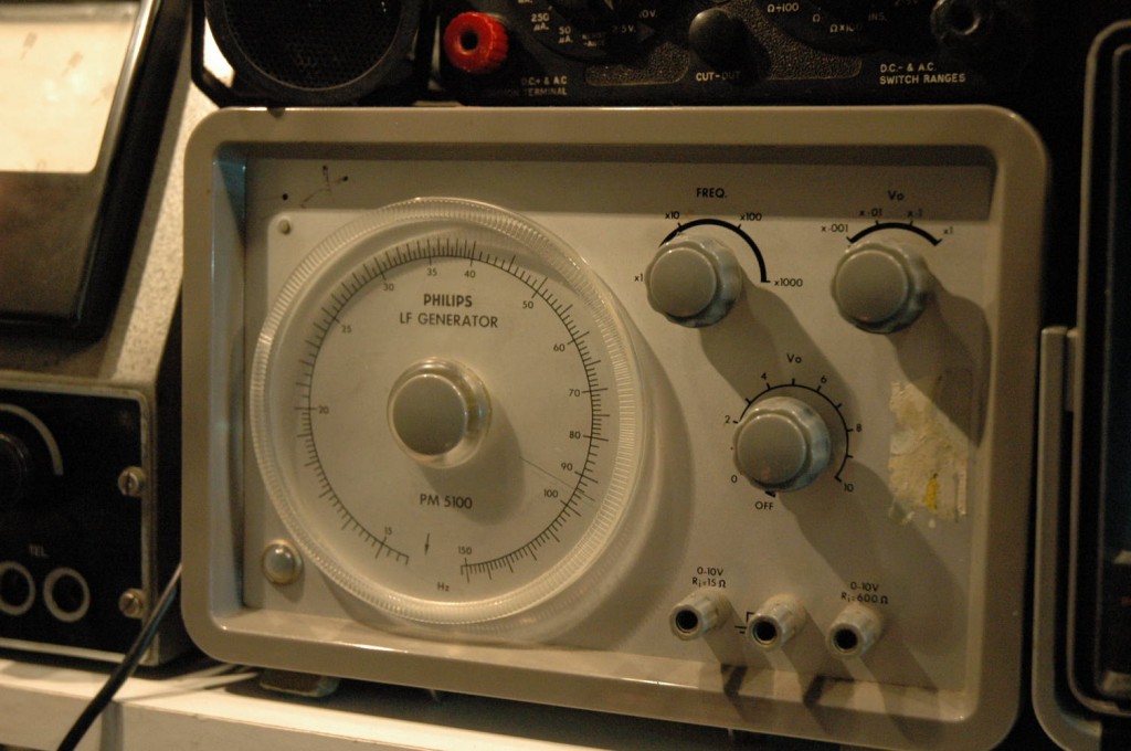 Altijd handig bij meten. De kleine belcom was een gift van PA0VIC, het was zijn eerste generatortje en hij doet het nog steeds prima. De philips was een gift van een CO lid en ik heb nog een moderner geval wat een functiegenerator is.